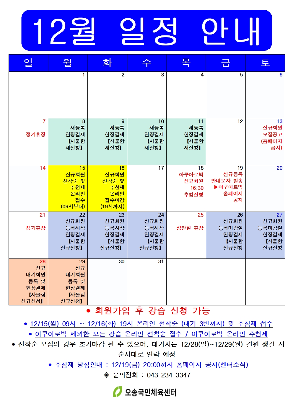 12월 일정 안내