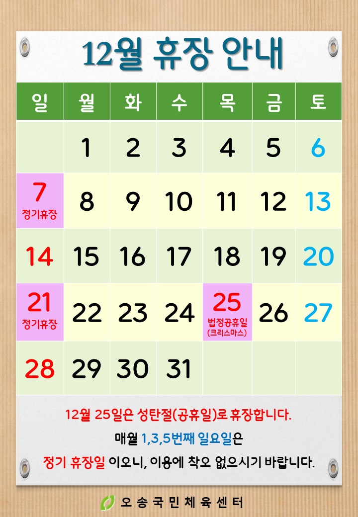12월 휴장 안내