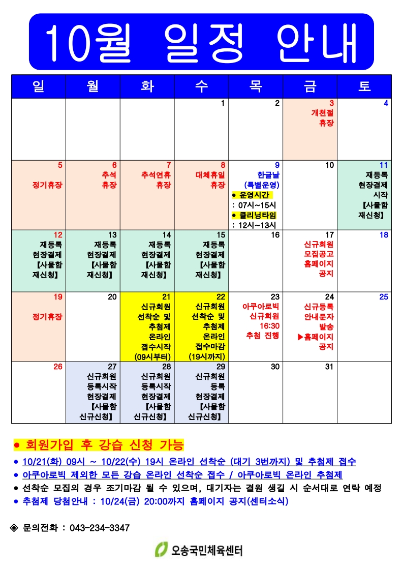 10월 일정 안내 - 신규회원 모집 10.17(금) 공지 예정