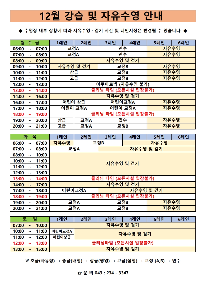 12월 강습 및 자유수영 안내